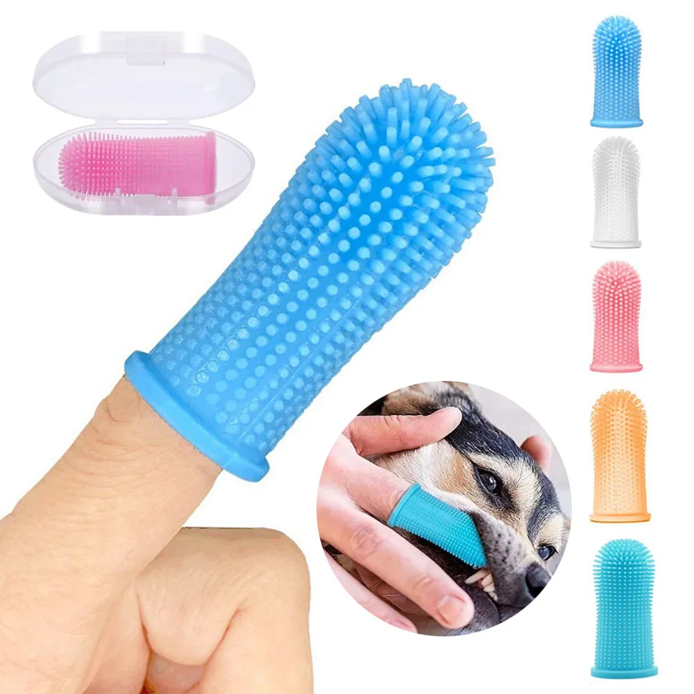 Productos de limpieza de cepillos de dientes para mascotas, para gatos y perros, cepillos de dientes de limpieza bucal, cerdas de silicona