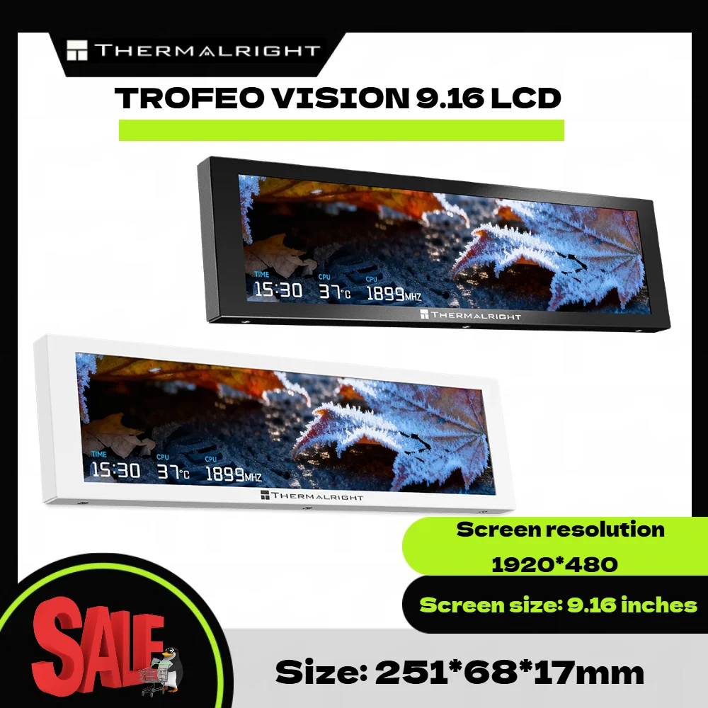 Thermalright TROFEO VISION LCD Pantalla LCD IPS a todo color de 9,16 pulgadas, configuración personalizada, resolución de 1920 x 480, magnética, puerto USB tipo C
