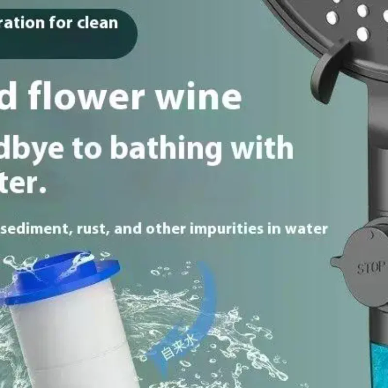 Nuevo cabezal de ducha con filtro de ahorro de agua de alta presión, cabezal de ducha de mano de 5 modos, juego de accesorios de baño con parada de un botón