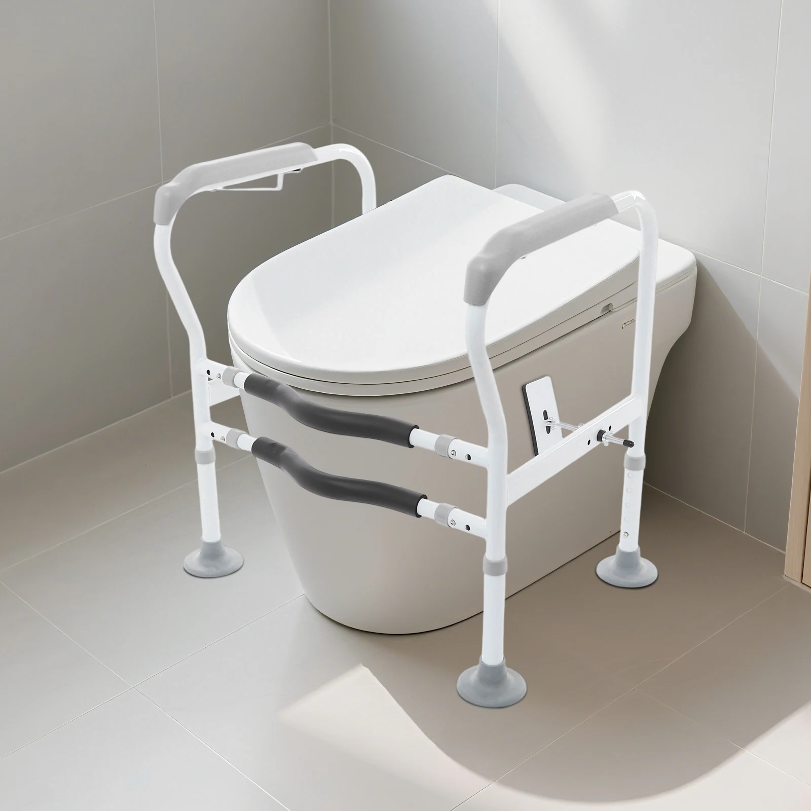 Rieles de seguridad para inodoro Marco de seguridad para el baño para personas mayores embarazadas discapacitadas Altura ajustable Longitud Blanco