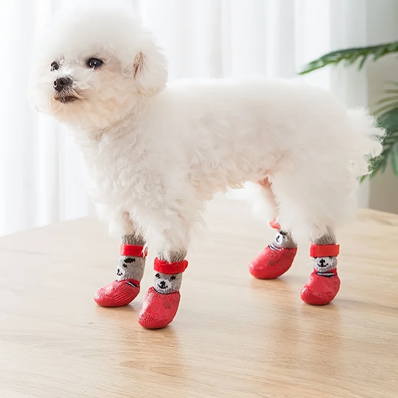 4 unids/set calcetines antideslizantes transpirables para perros protección de pata de mascota suave ajustable calcetines antideslizantes impermeables cálidos de algodón para perros al aire libre