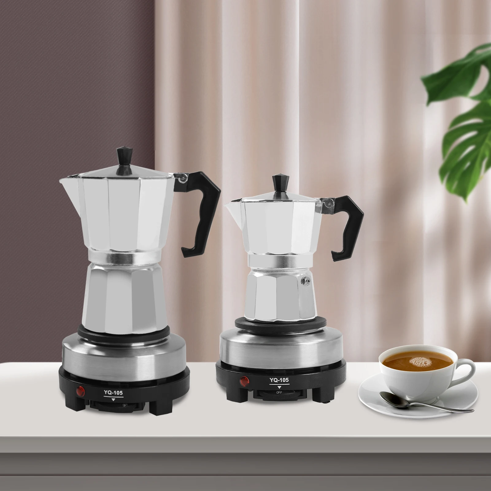 Cafetera Espresso de 3/6 tazas con placa caliente, Mini estufa eléctrica de una sola placa caliente de 500W, urna de café de temperatura ajustable