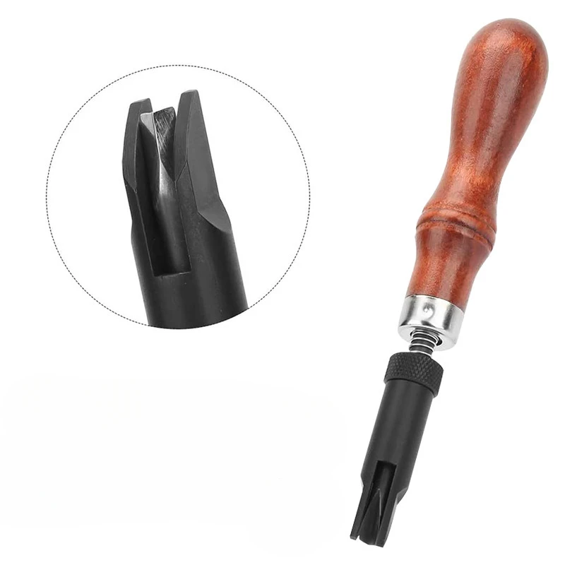 Herramienta de ranurado de cuero, empujador de ranura en forma de V, trinchera útil con cabezal cortador ajustable y mango de madera maciza, herramienta de cuero
