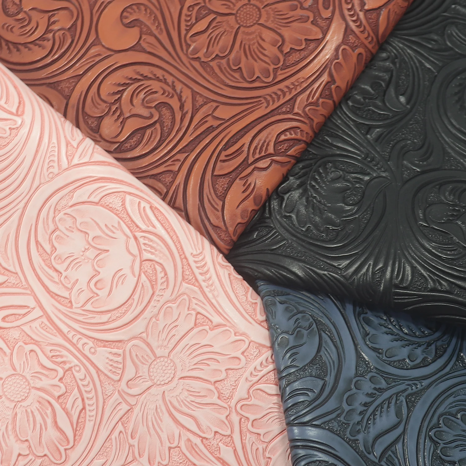 Láminas de Cuero Sintético PVC de 30x135cm con Diseño de Flores en Relieve y Textura para Manualidades, Estuches para Lápices y Lazos para el Cabello