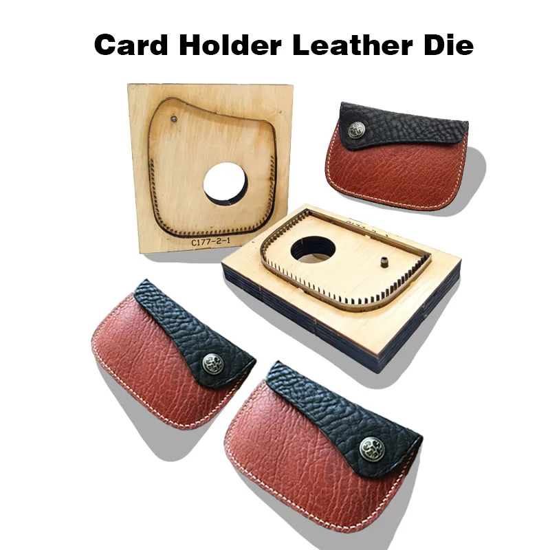 Juego de moldes para cuchillos de cuero C177 DIY, herramienta de corte para carteras y tarjeteros hechos a mano, kit de herramientas con hoja de acero y mango de madera para tarjetas bancarias.