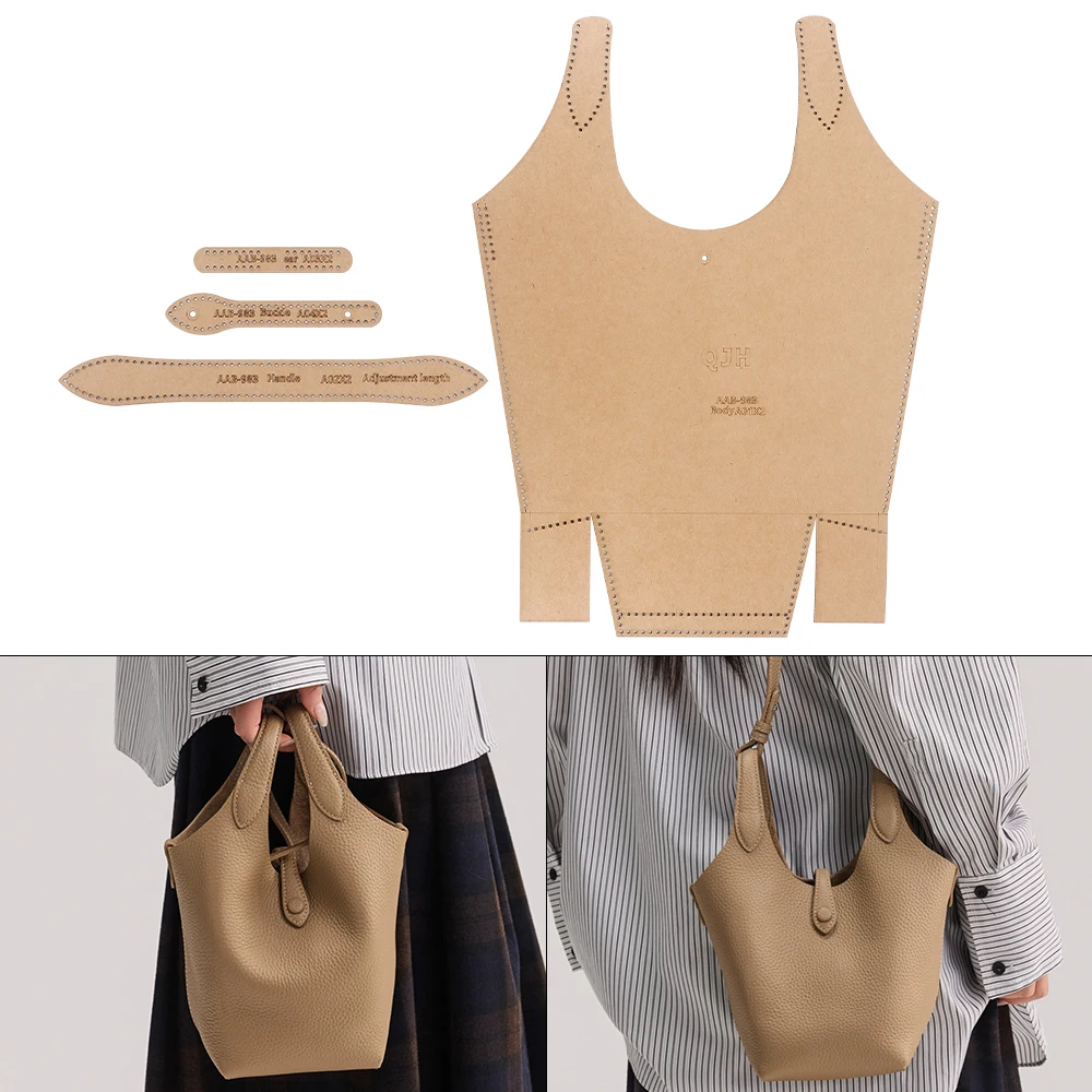 1 Juego de Bolsos Estilo Cesta, Bolsos Tipo Cubo, Bolsos Tote - Plantilla de Papel Kraft, Manualidades de Cuero DIY - Plantilla de Costura con Agujeros