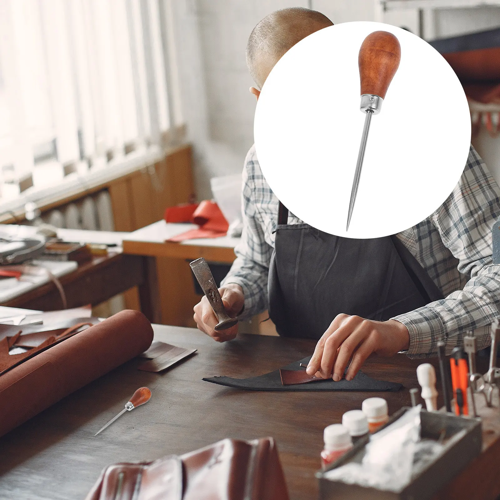 Punzón de encuadernación con mango de madera, herramienta multiusos para manualidades DIY, punzón de costura, punzón para encuadernación
