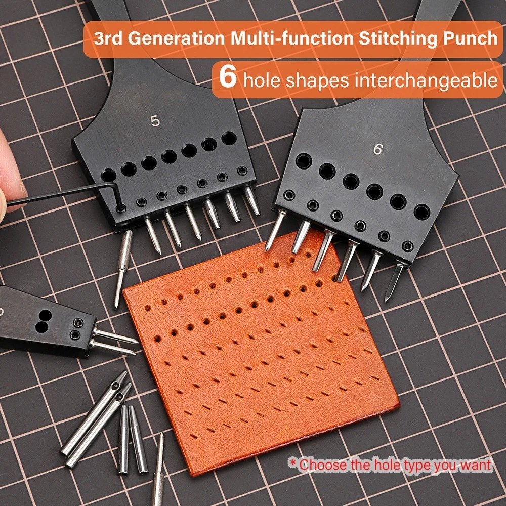 Punzones de cuero 3G con cabezal reemplazable, punzón de diamante extraíble, punzón de agujero redondo, punzón de estilo francés, herramientas de bricolaje