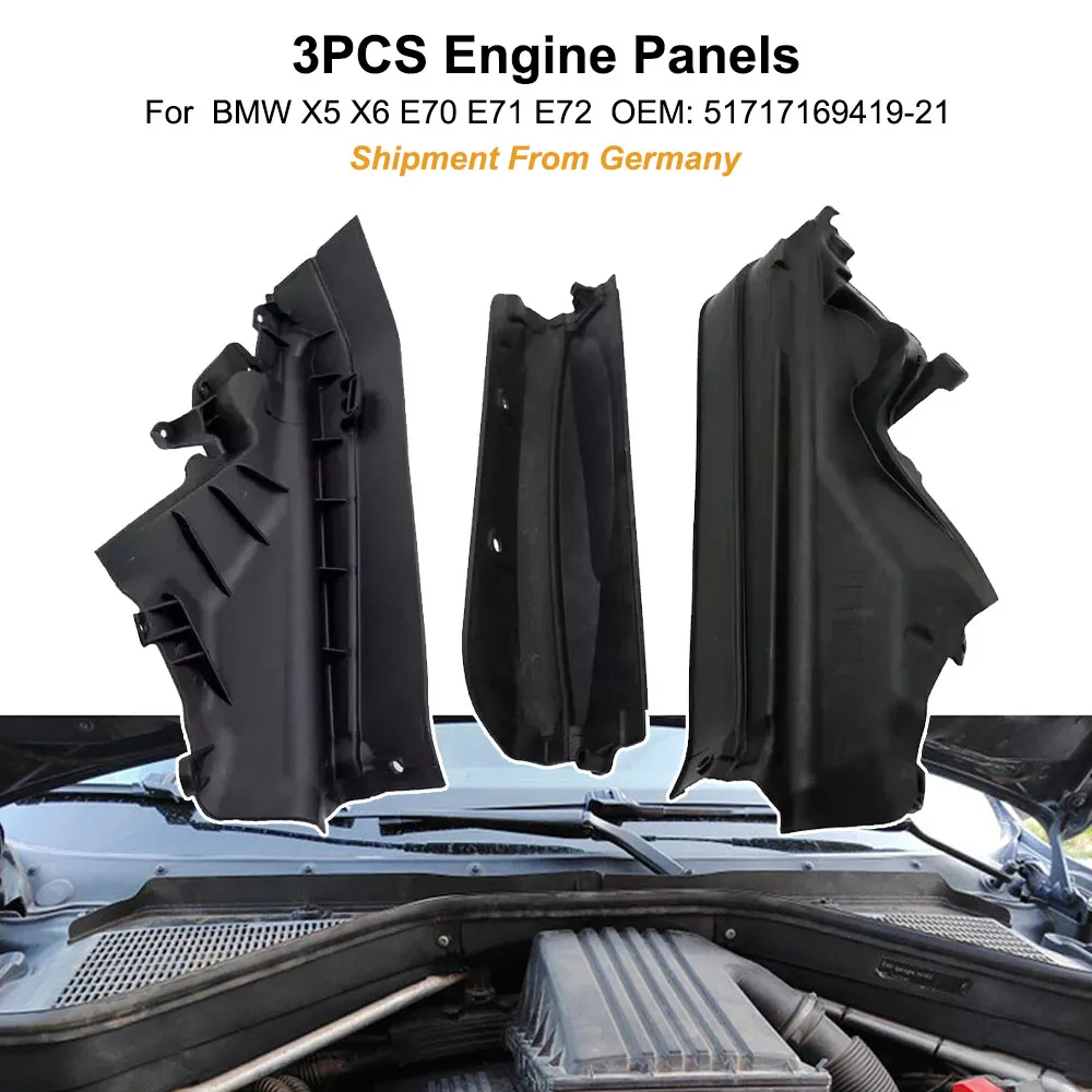 3 unids/set protector de Panel de partición del compartimento superior del motor de coche accesorio de automóvil para BMW X5 X6 E70 E71 E72 para OEM 51717169421