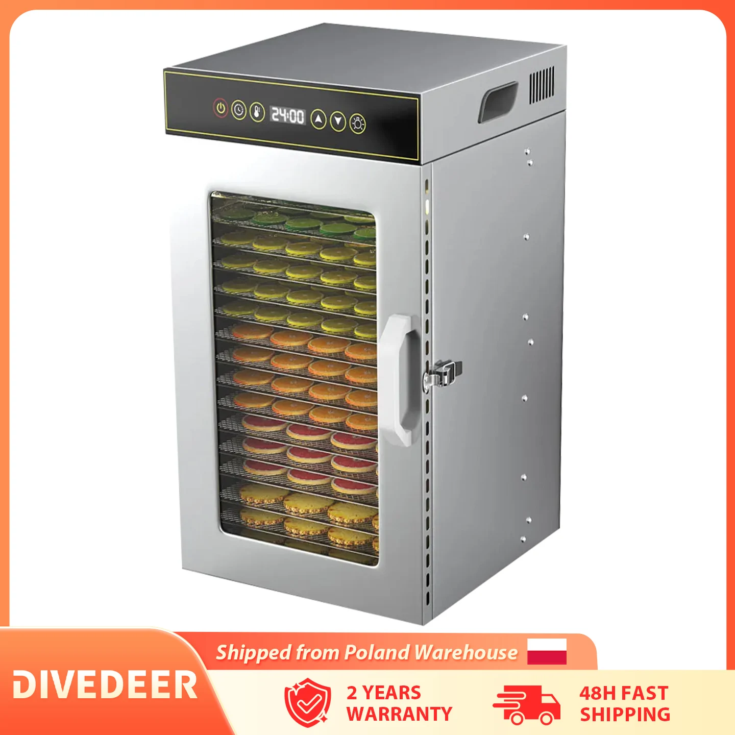 DIVEDEER Deshidratador de alimentos doméstico de 18 capas Secador de acero inoxidable para frutas, verduras, carne, temperatura ajustable 30-90 ° C 800W
