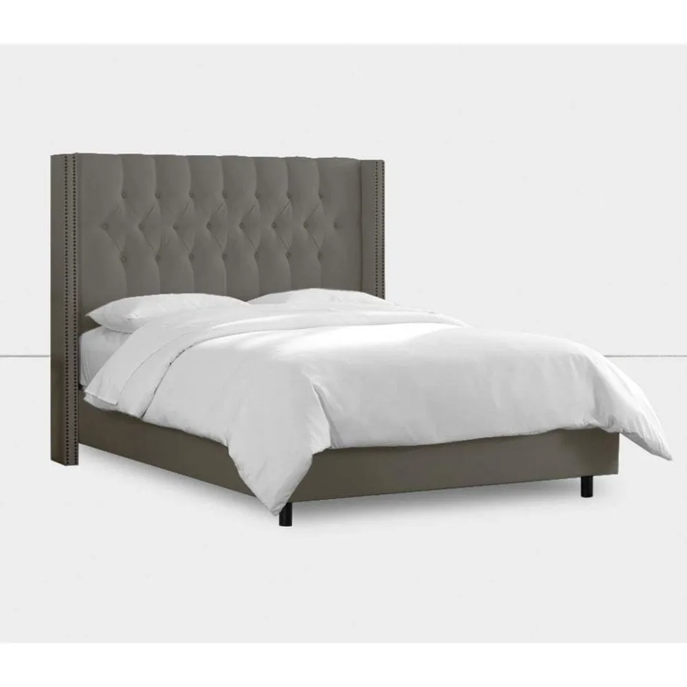 Cabecero tapizado para cama de 105 (125 x 120 cm), textil suave gris claro, cama juvenil, cama doble, cabecero