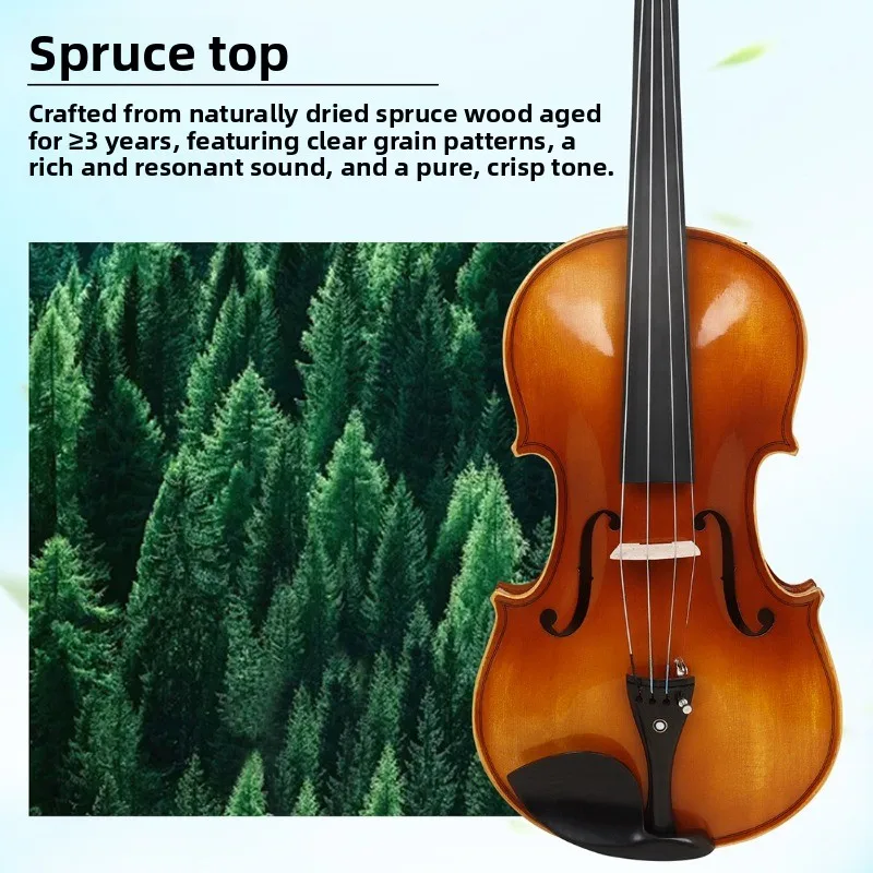 Viola Acústica de Madera Maciza Hecha a Mano de 16 Pulgadas con Panel de Abeto, Estuche y Arco, Instrumento para Principiantes y Adultos