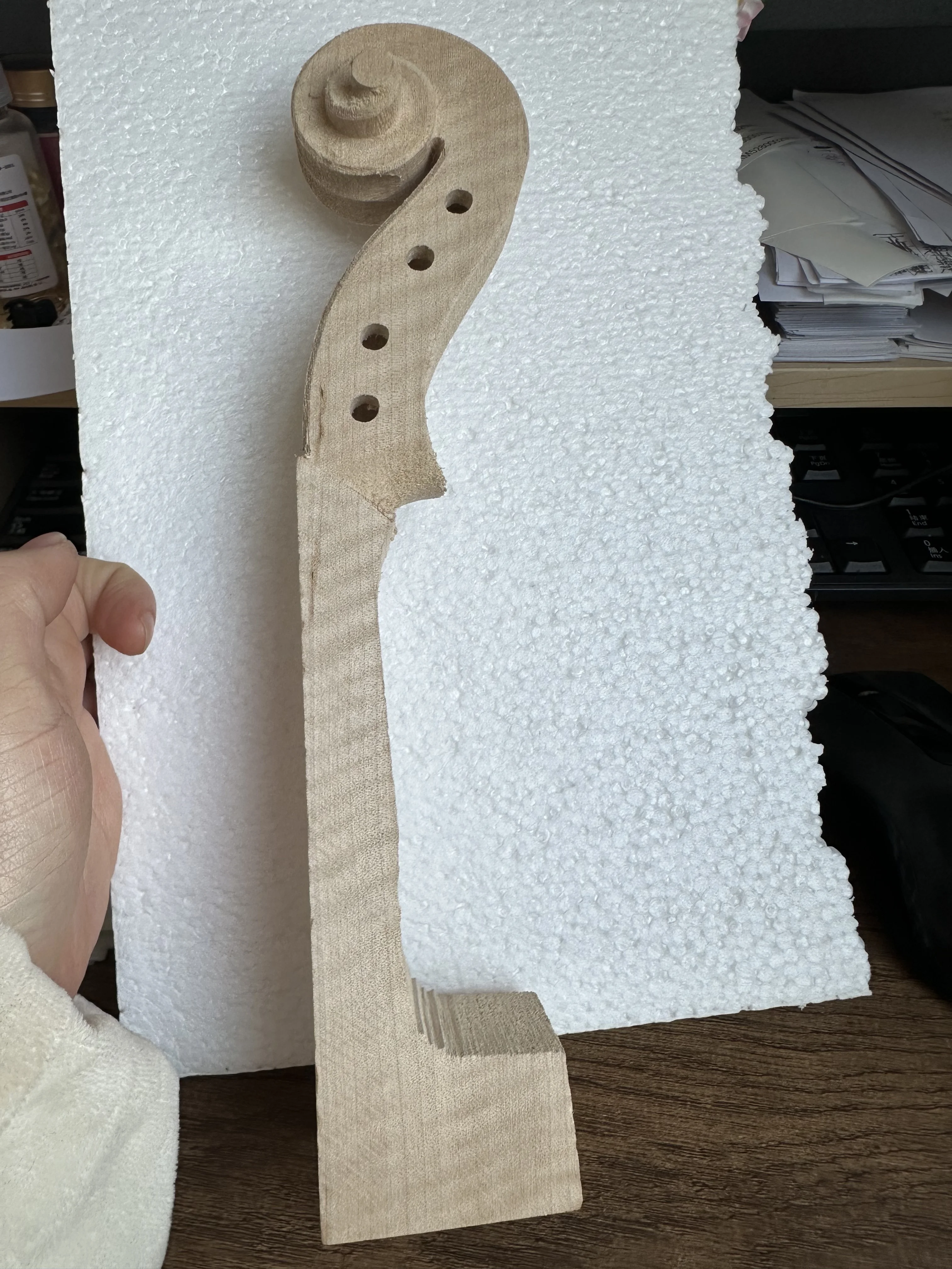 Cabezal de desplazamiento con llamas sin pintar, cabeza de Viola, corte CNC, cuello de Viola DIY sin diapasón, madera de arce de llama sin terminar, 1 ud.