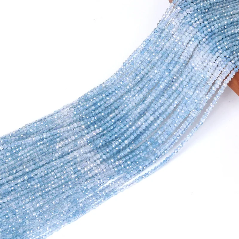 Cuentas Redondas de Aguamarina Natural en Degradado, Cuentas Sueltas de 2 mm para Hacer Pulseras y Collares