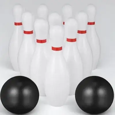 Juego de bolos de plástico, 1 set, bolos de 5.9 pulgadas, bolas negras de 2.7 pulgadas, juego de bolos para interiores, bolas divertidas para exteriores, mini