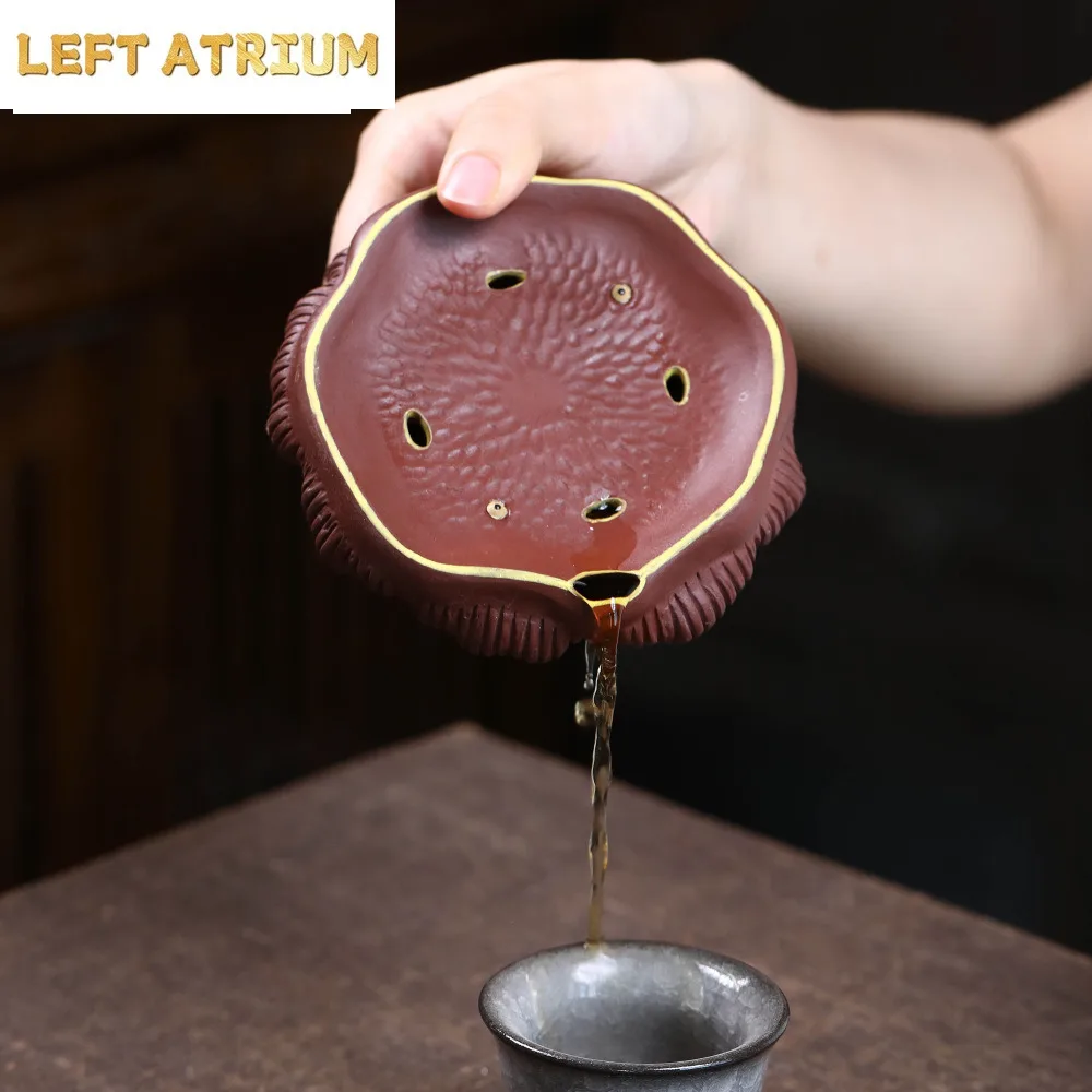 Yixing-soporte de cubierta de tetera de Cola de arcilla púrpura, marco de cubierta Retro, soporte de tapa, estante de tapa de olla de Zisha para el hogar, artesanía para ceremonia del té