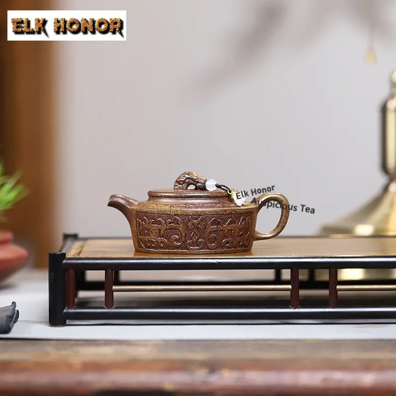 Teteras de arcilla púrpura Yixing elegantes de 180ml, tetera hecha a mano Rong Tian, sección de mineral crudo, tetera de barro, juego de té Zisha para regalos de té