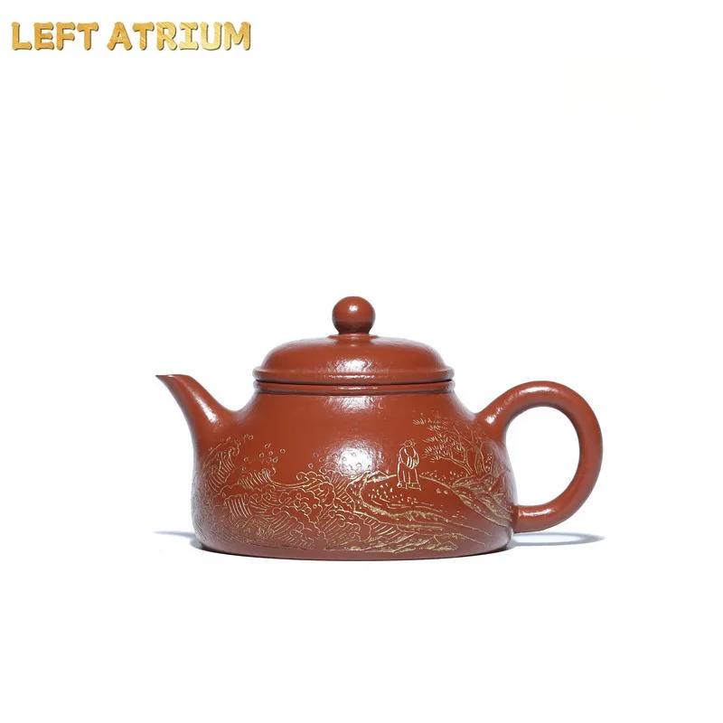 Teteras de Arcilla Morada Yixing de 100 ml, Hechas a Mano, con Dibujo Dorado, Tetera de Arcilla Cruda Zhu, con Filtro, Juego de Té Zisha, Decoración