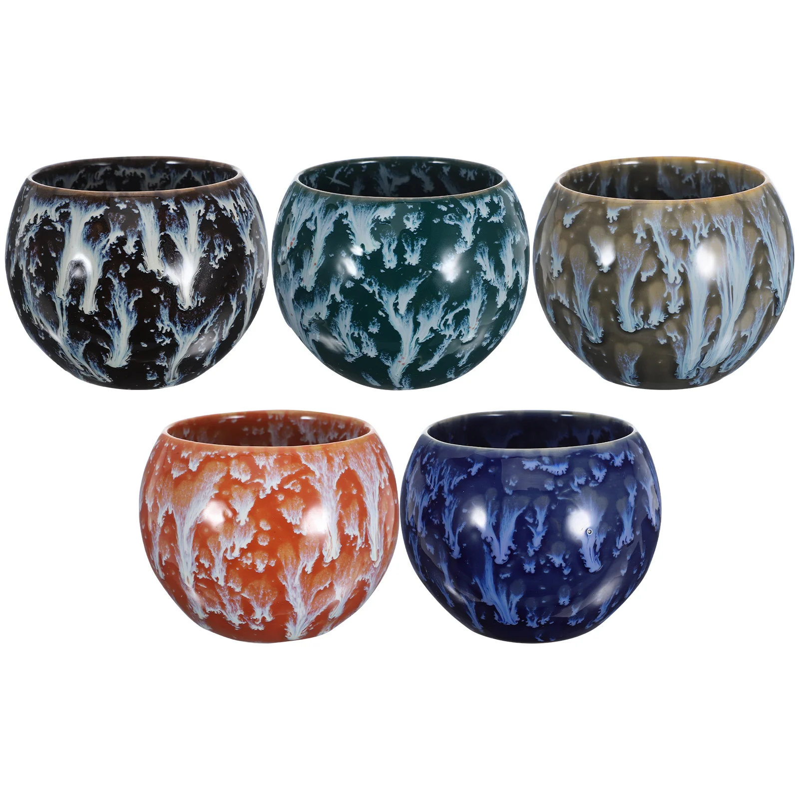 Juego de 5 Tazas de Té de Cerámica, Estilo Kiln Change, Elegantes Tazas para Beber Té, para Oficina, Hogar, Regalo