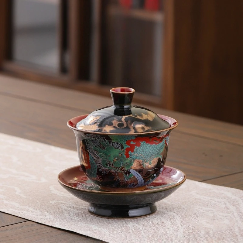 Arte de cerámica de tinta de horno de cambio de leña Retro, taza de cerveza de té estética Gaiwan, cubierta de té tueen, tazón de cerveza, accesorios artesanales
