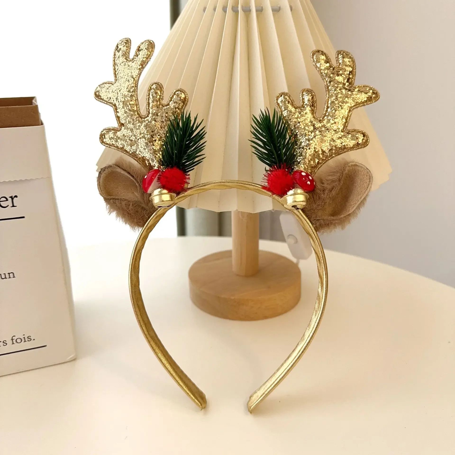 Diadema navideña con orejas de ciervo y cuerno de Reno, decoración de ambiente navideño familiar, diadema de regalo para fiesta de año nuevo, 1 ud.