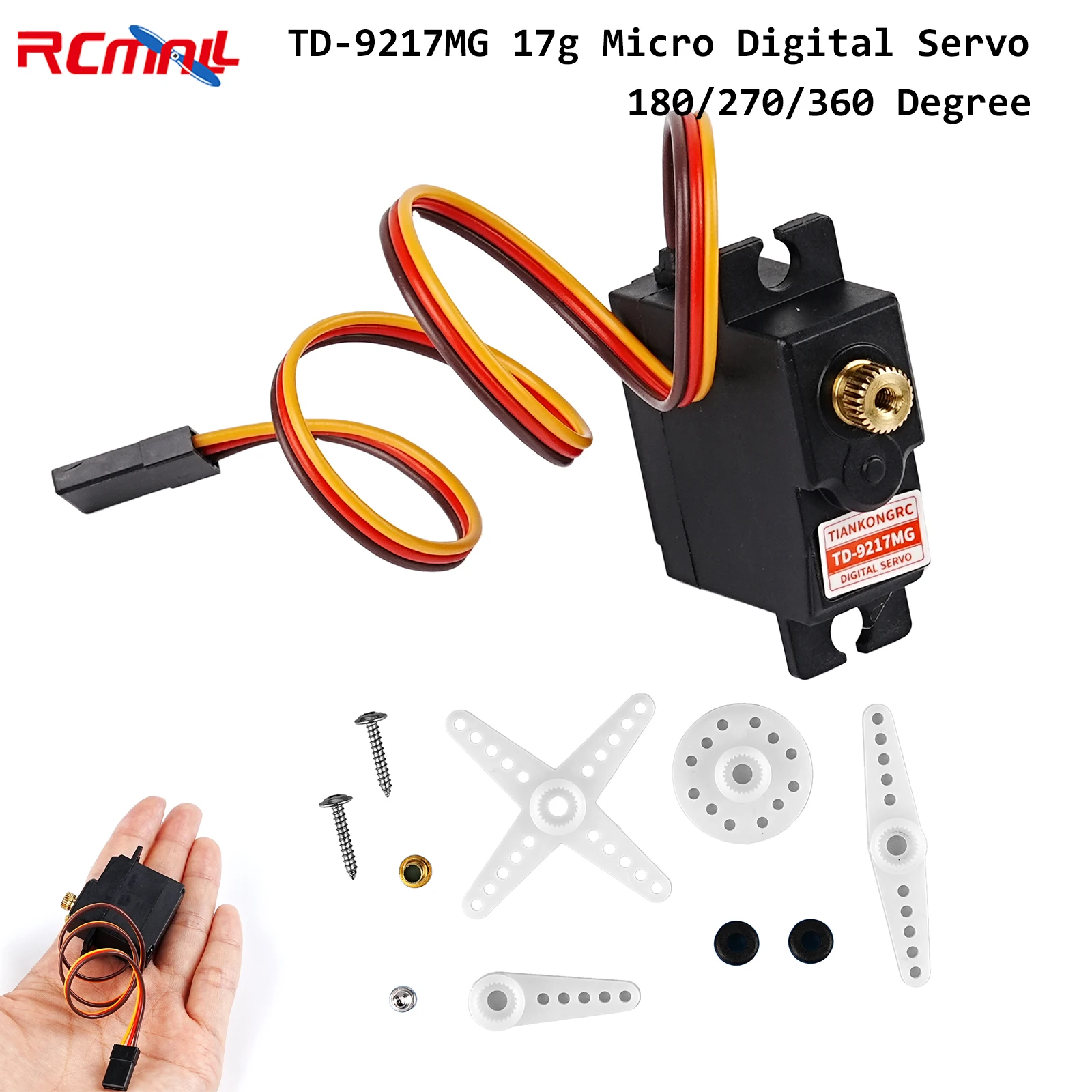 TD-9217MG 17g Micro Servo Digital 180/270/360 grados 6V/3,5 KG Motor de cepillo de carbono Servos de engranaje de Metal para coches robóticos modelo