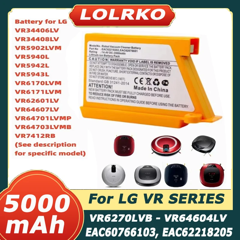 Batería de Robot aspirador mejorada de 5000mAh para LG EAC62218202 VR64703LVMB,VR7412RB,Cameron Sino Li-ion,Bateria,EXW