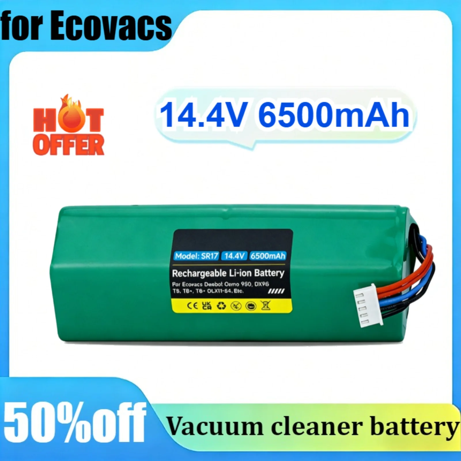 Batería de 14.4V 6500mAh para Aspiradora Robótica Ecovacs T5 T8 T9 X1 950 DX93 DX96 DLX11