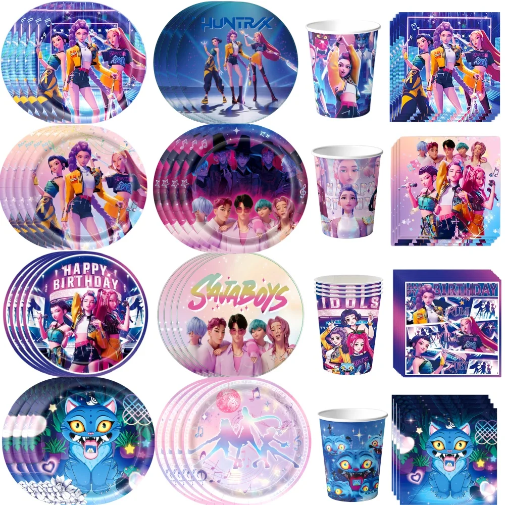Artículos de Fiesta de Cumpleaños con Temática de Cyber D-emon Hunters, Platos, Servilletas, Vasos, Mantel y Pancartas de Feliz Cumpleaños Desechables de K-POP