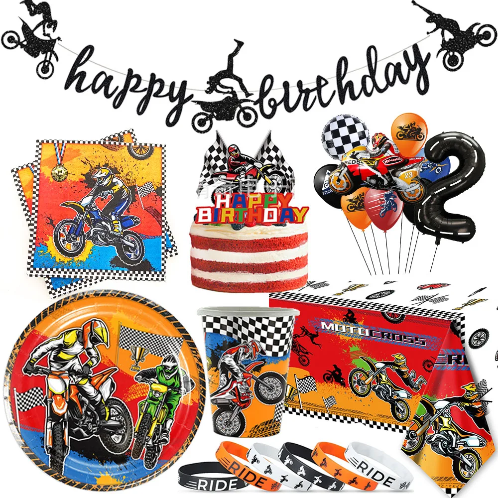 Decoración de fiesta para moto de cross, pancarta para motocicleta, globos, vajilla, vasos de papel para Motocross, platos, servilletas, suministros para fiestas temáticas de motocicleta