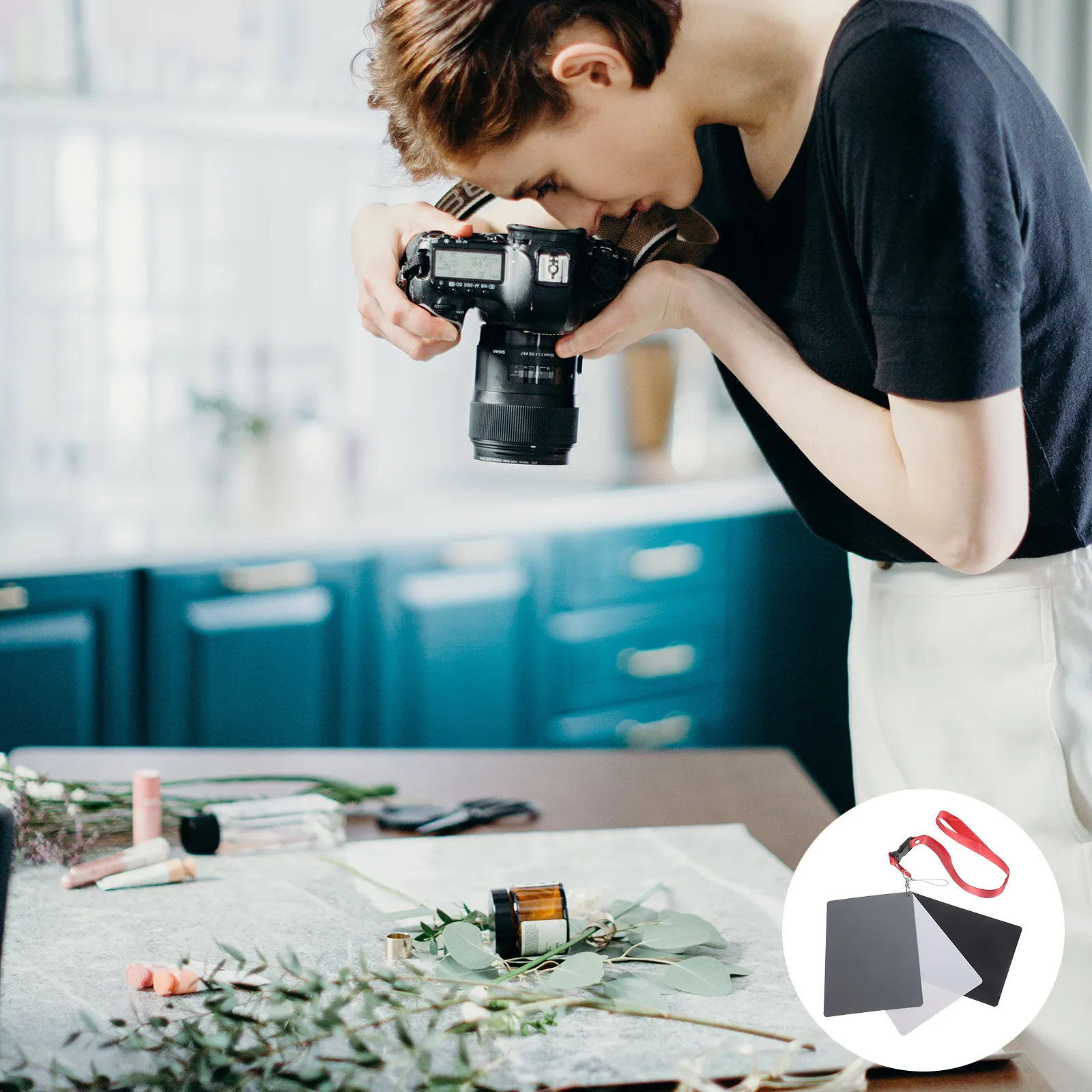 Tarjeta de Calibración de Color Portátil para Fotografía, Gris, Negra y Blanca, con Correa para el Cuello, para Cámaras DSLR, Verificador de Exposición de Color