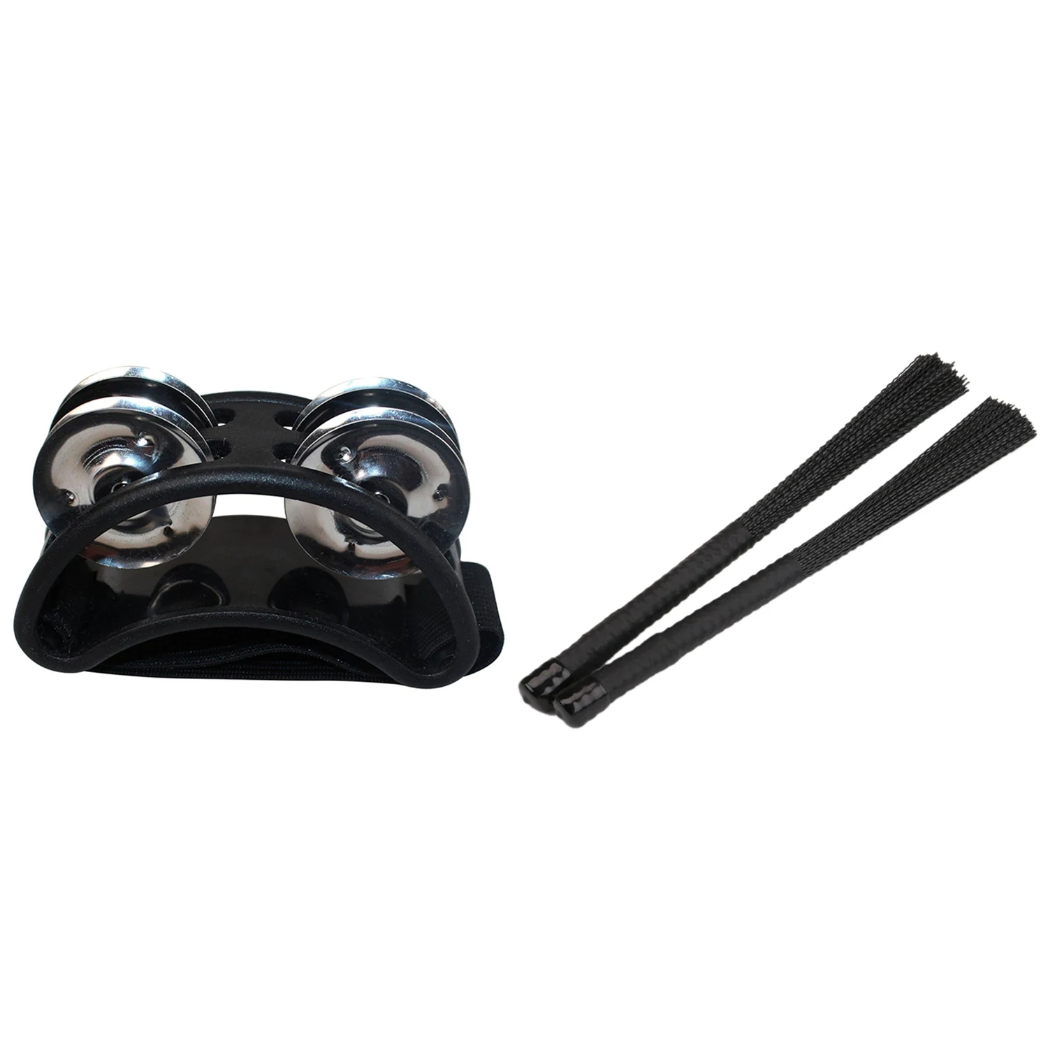 ABJM-pandereta de pie de percusión con cascabeles de Metal con 2 uds cepillo de Cajon cepillos de tambor telescópicos palos de nailon percusión