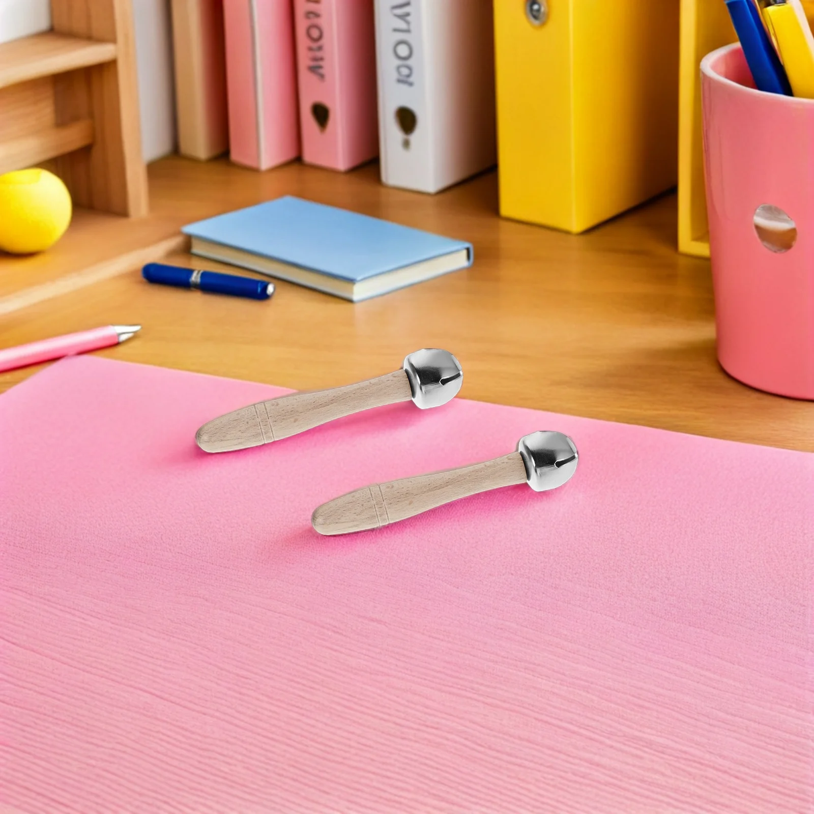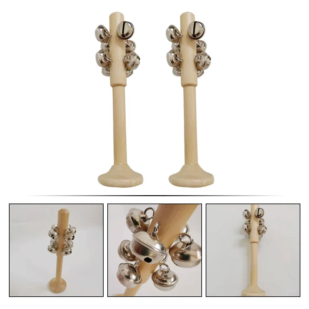 Campanas de palo de madera para niños, instrumento Musical, herramienta de aprendizaje temprano, desarrollo cognitivo, decoración de escritorio de oficina, 2 uds.