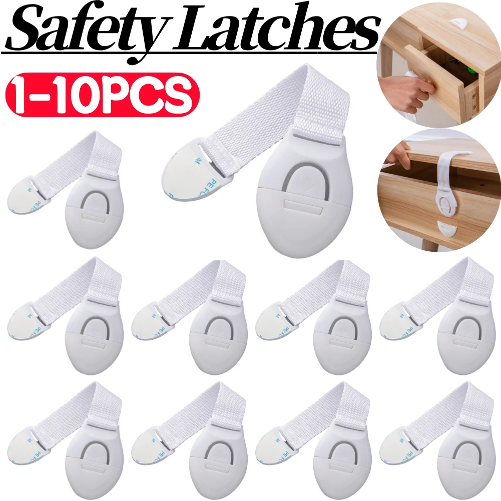 Cerraduras con correa de seguridad para niños, adhesivo versátil para armarios, puertas, ventanas y refrigeradores, sin perforación, 1/10 piezas