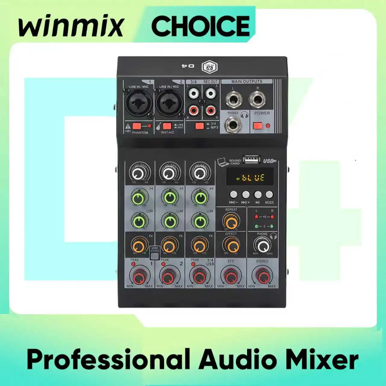 Consola mezcladora Winmix D4 de 4 canales, interfaz de Audio, Bluetooth, grabación USB, PC de 48V, consola mezcladora de sonido portátil para DJ y Karaoke