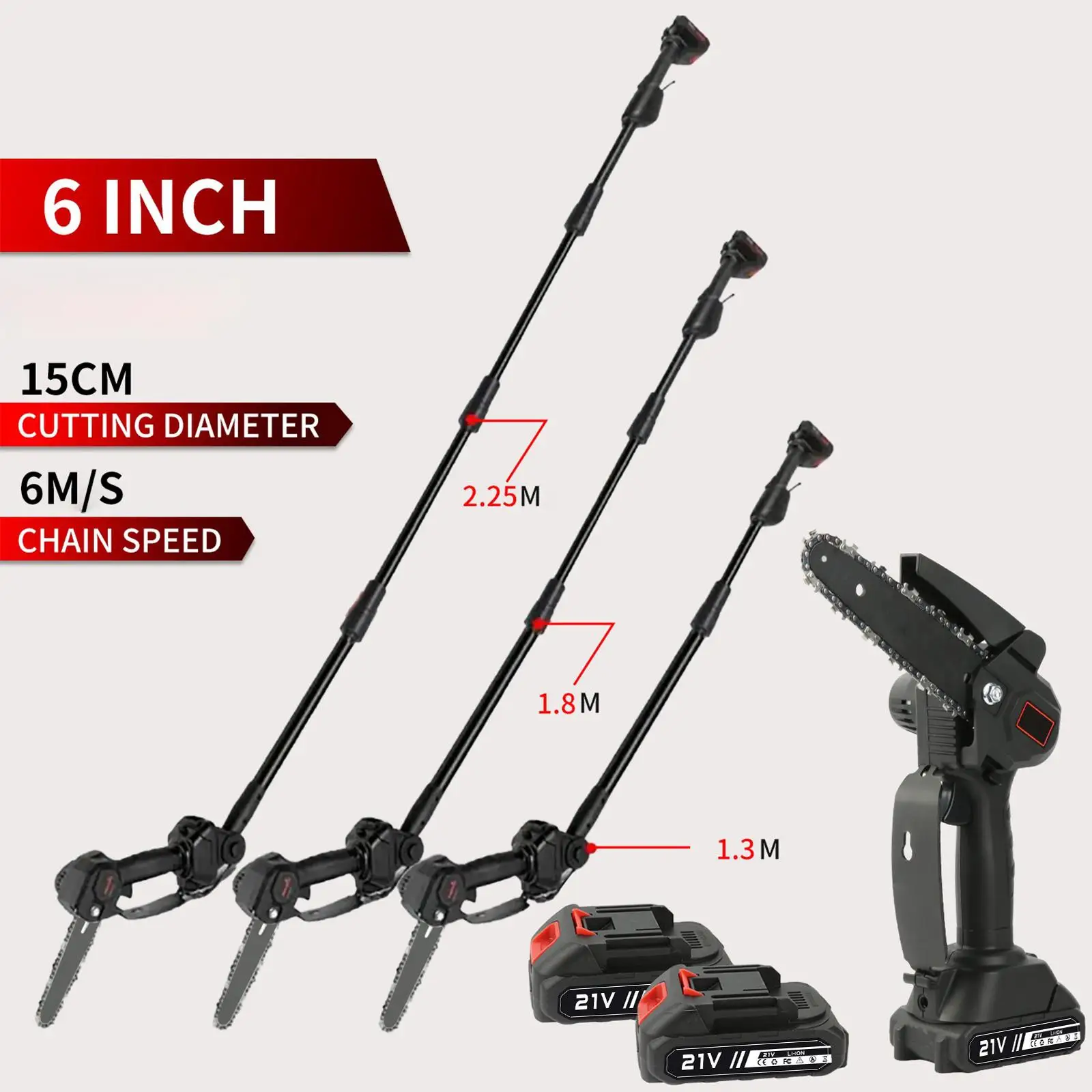 Motosierra eléctrica de 6 pulgadas, podadora de poste telescópica 2 en 1, sierra de rama alta, herramienta de poda de árboles de jardín para Pin de batería Makita de 18V