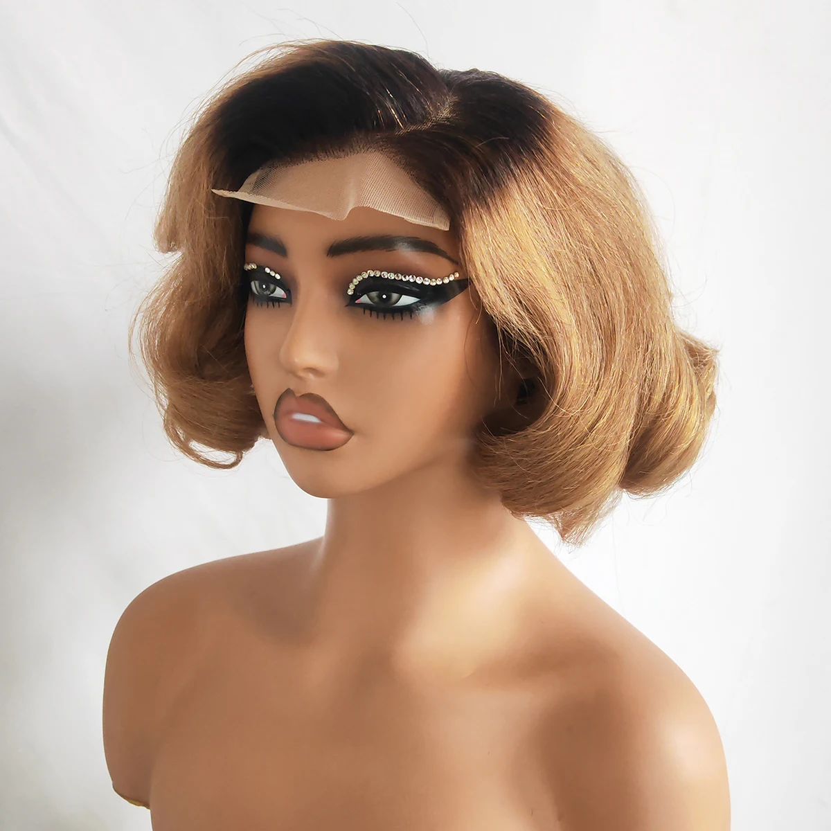 Peluca de cabello humano Marrón rojizo para mujer, postizo de 13x4, transparente, corto, recto, con encaje frontal, prearrancado, n. ° 33