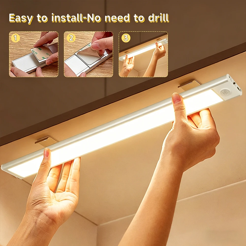 Lámpara LED con Sensor de movimiento para debajo del gabinete, barra de luz de 3 colores, luz LED ajustable, recargable, regulable, lámpara nocturna magnética para interiores
