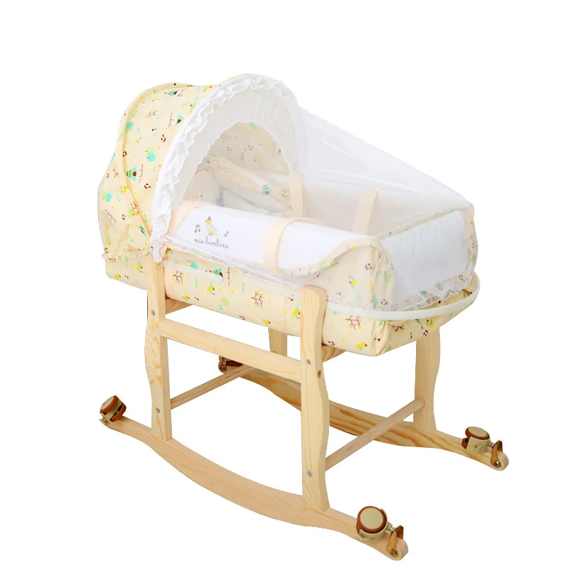 Soporte de cesta Moisés, soporte de cesta Moisés mecedora de madera para bastoncillos de bebé, soporte de Moisés de madera ajustable con ruedas