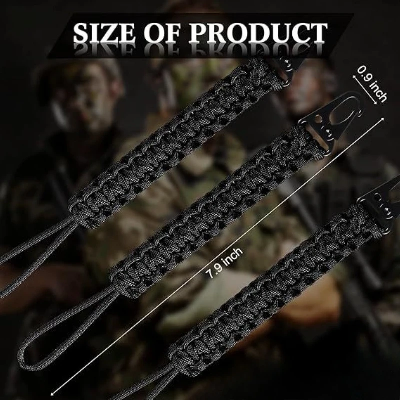 Llavero antipérdida para deportes al aire libre tejido Paracord de siete núcleos en stock, llavero con cinturón mosquetón portátil y resistente