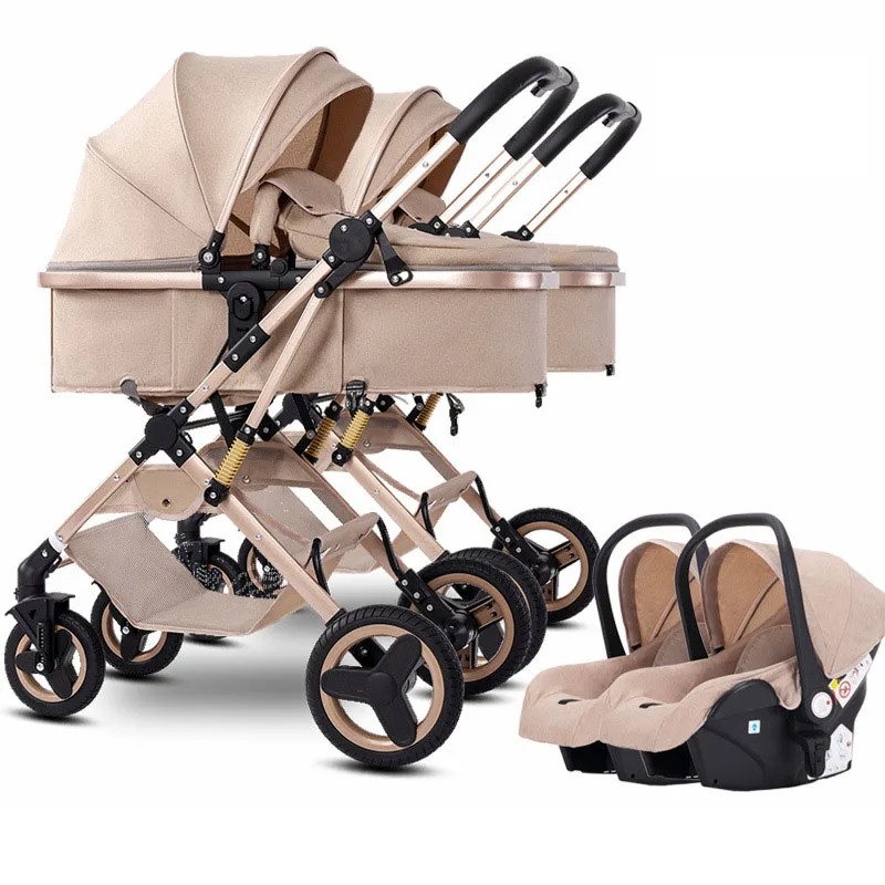 Cochecito de bebé gemelo que puede sentarse y acostarse, cochecito de bebé de alto paisaje, carritos de doble asiento plegables y ligeros de 0 a 4 años