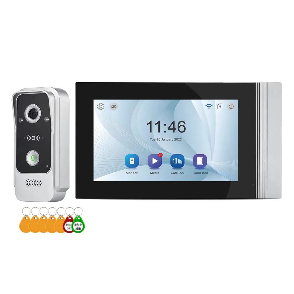 Pantalla IPS de 7 pulgadas 1V2 2MP 1080P Rifd Control de acceso intercomunicador con cable timbre Video puerta teléfono Visual visor de puerta cámara