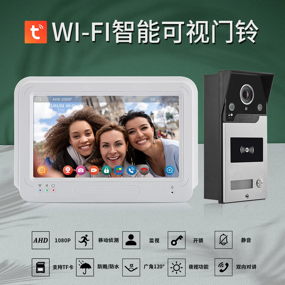 Tuya APP 7 pulgadas pantalla IPS WIFI puerta teléfono intercomunicador 2MP 1080P timbre Visual 120 grados gran angular visor de puerta de seguridad para el hogar