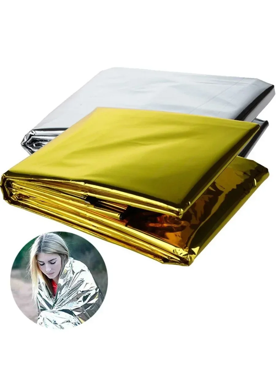 Manta térmica dorada/plateada para emergencias y supervivencia, mantas para acampar para exteriores, senderismo, maratones, conducción para todo tipo de clima