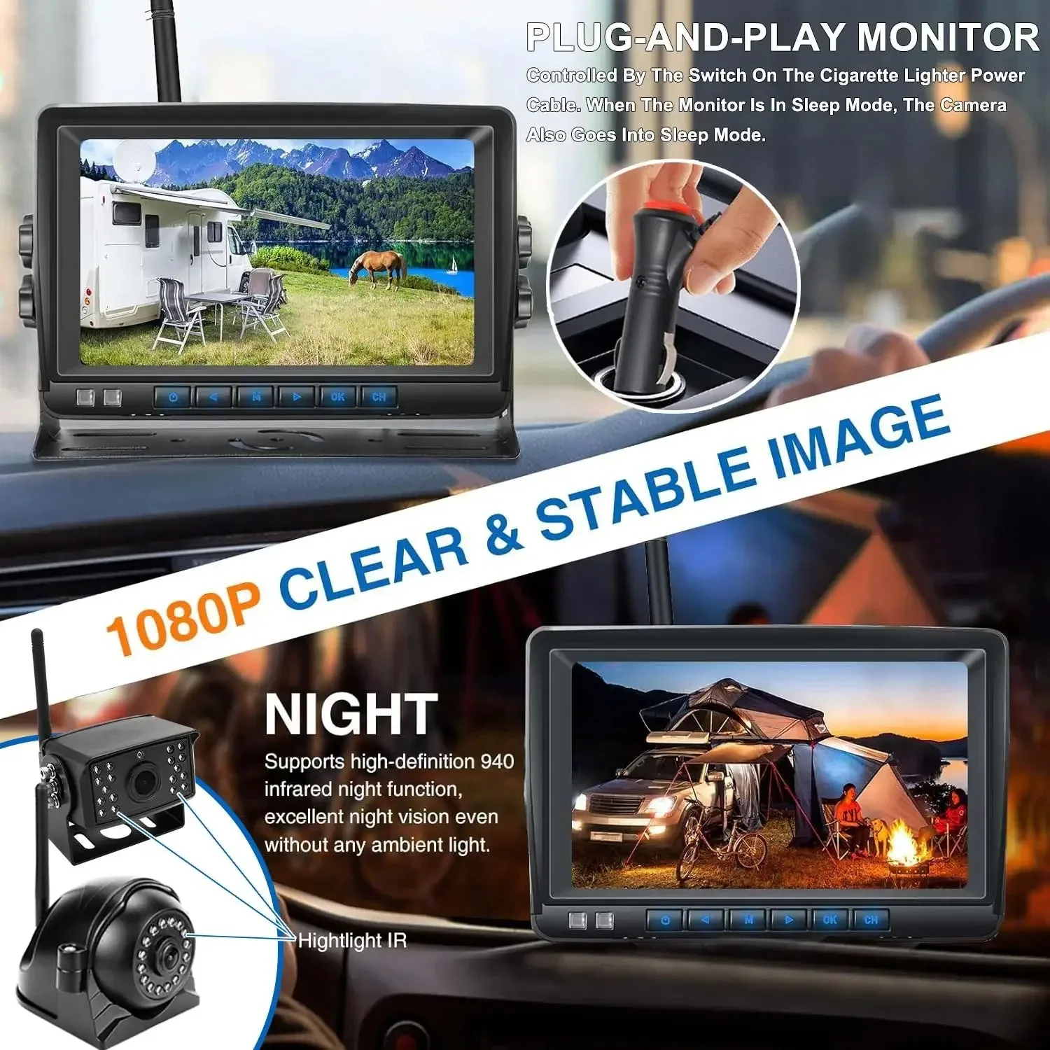 Grabador PZ619-4 CH, 10 pulgadas, 2,4G, inalámbrico, IPS, DVR, Monitor AHD, cámara de visión nocturna de alta definición 1080 para autobús, coche y camión