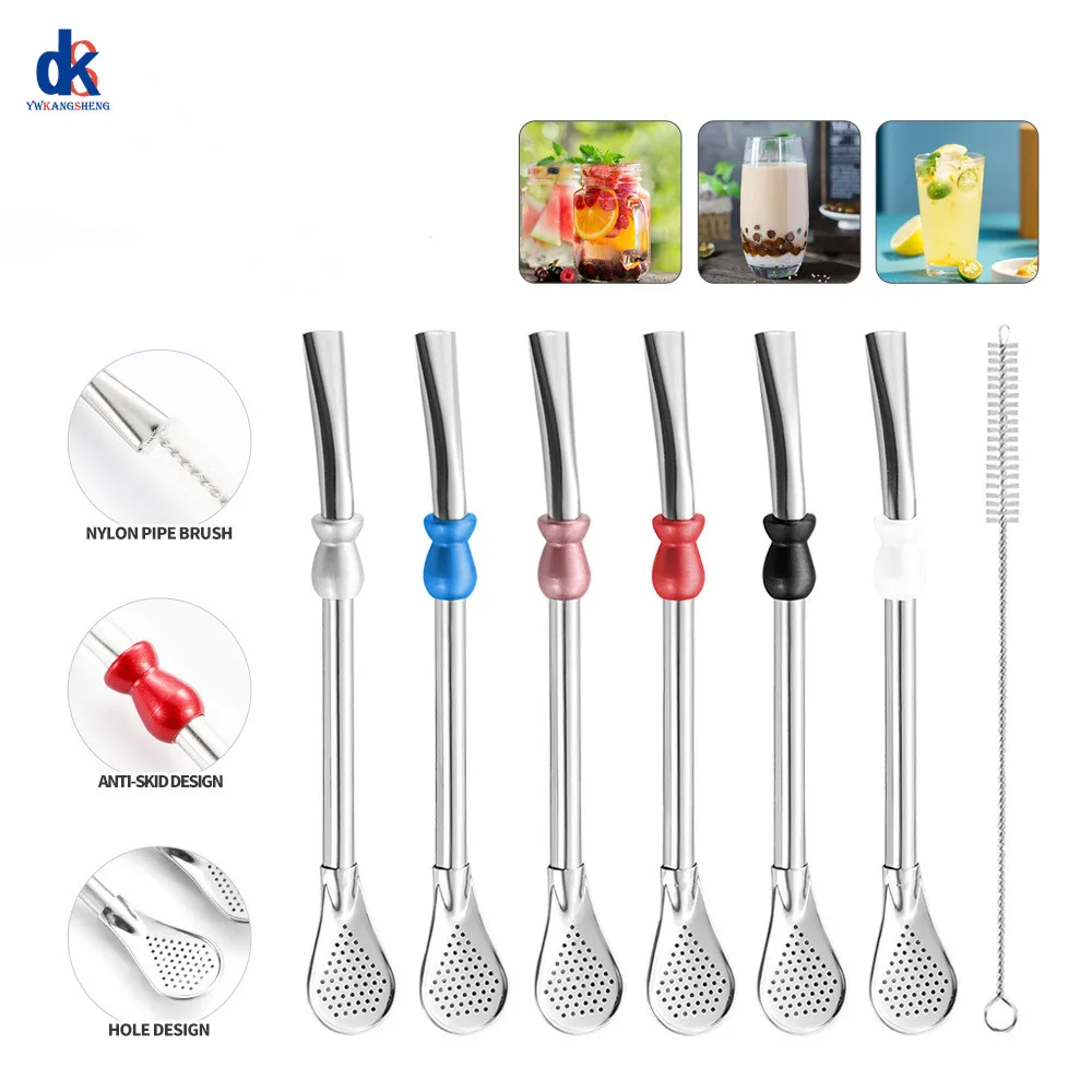 Gran oferta cuchara con pajita reutilizable de acero inoxidable 304 filtro de té Yerba Mate Bombilla cucharas de café herramientas de cocina para beber leche