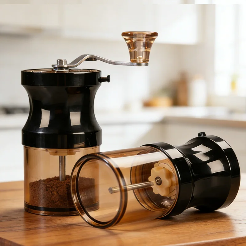 Molinillo de café ajustable de 5 engranajes, contenedor transparente, mango cómodo, molinillo de café Manual, desmontable, ahorro de esfuerzo