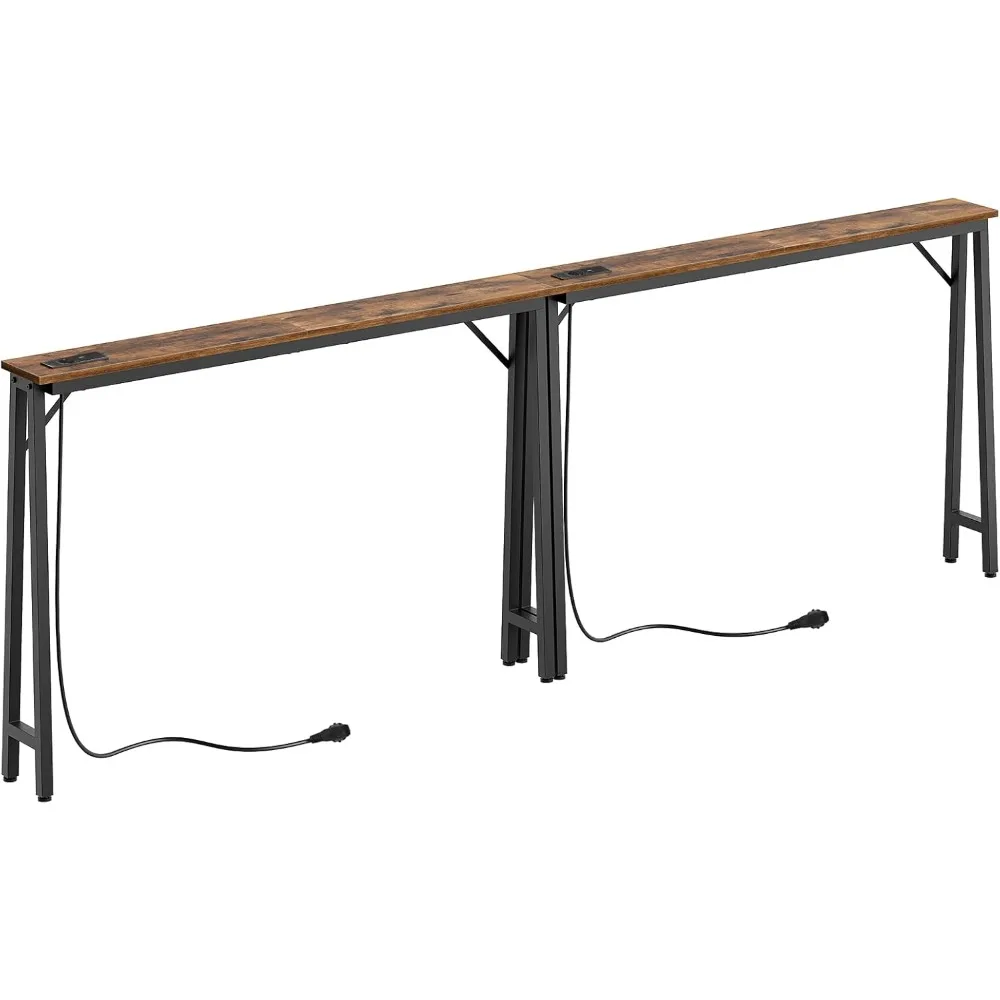 Juego de 2 Mesas de Entrada de 15 cm de Ancho, Mesas de Sofá Estrechas con Base de Carga, Consolas con Estructura Metálica