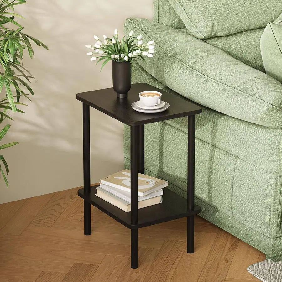 Mesa auxiliar de 2 niveles, mesa auxiliar para sala de estar, mesa auxiliar estrecha con espacio de almacenamiento, 40x30x52 cm, mesa auxiliar pequeña para dormitorio