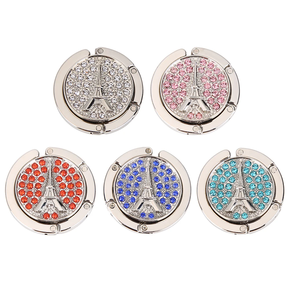 Estante para llaves portátil con diamantes de imitación, gancho para mesa, colgador plegable de aleación de Zinc para bolso, cierre de mesa, ganchos de escritorio, colgador de almacenamiento para viajes al aire libre